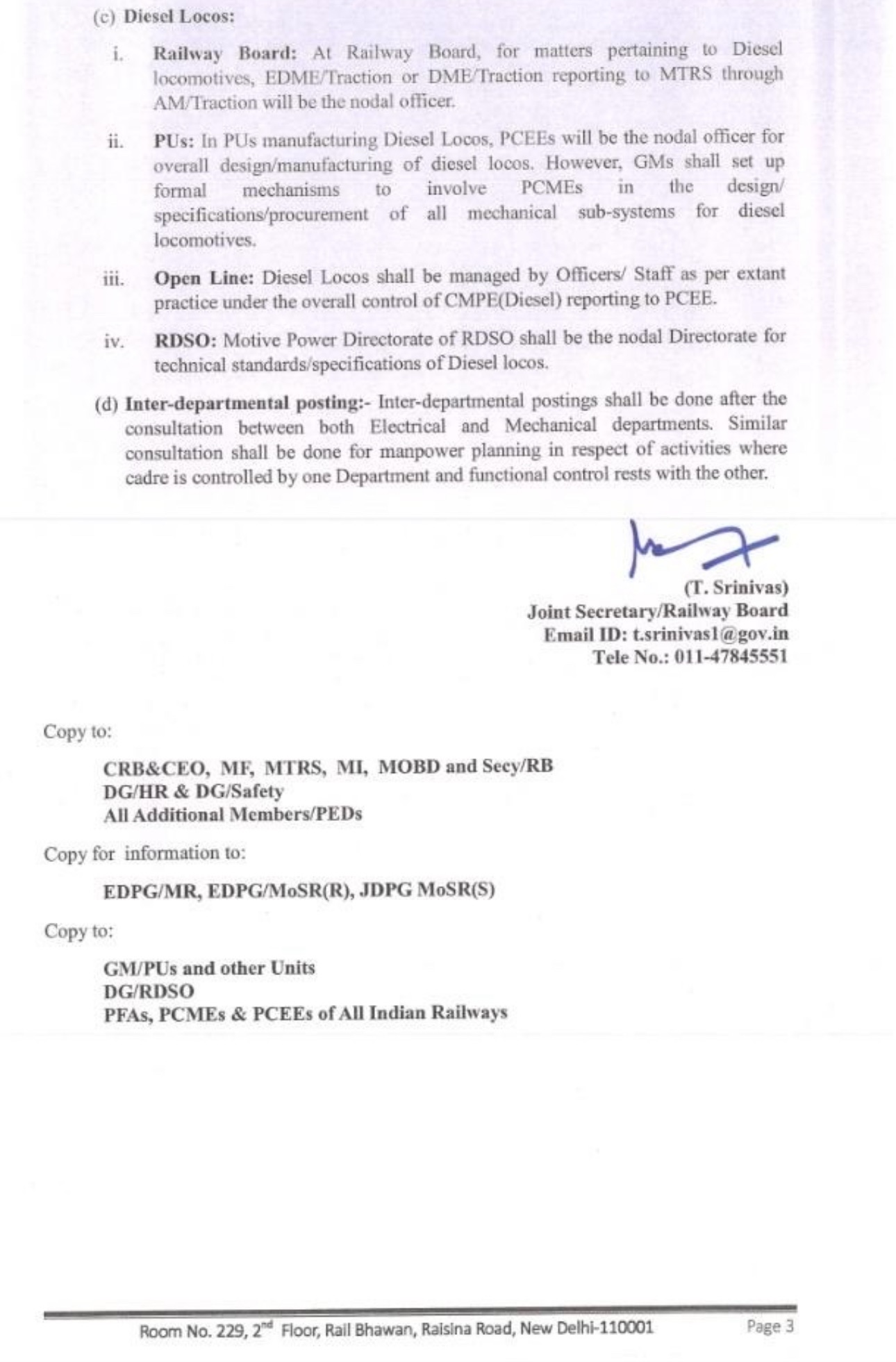 A chosen officer was posted even without applying against the advertised vacancies, which led to cancellation of wants and officer asked to apply against re-advertised position at #RDSO. This officer has just retired and the trainsets have been in matter of weeks shifted to Carriage Directorate with PS&EMU Directorate. in supporting role as clarified in Railway Board’s letter no. 2025/O&M/8/2 of 25 July, 2025.