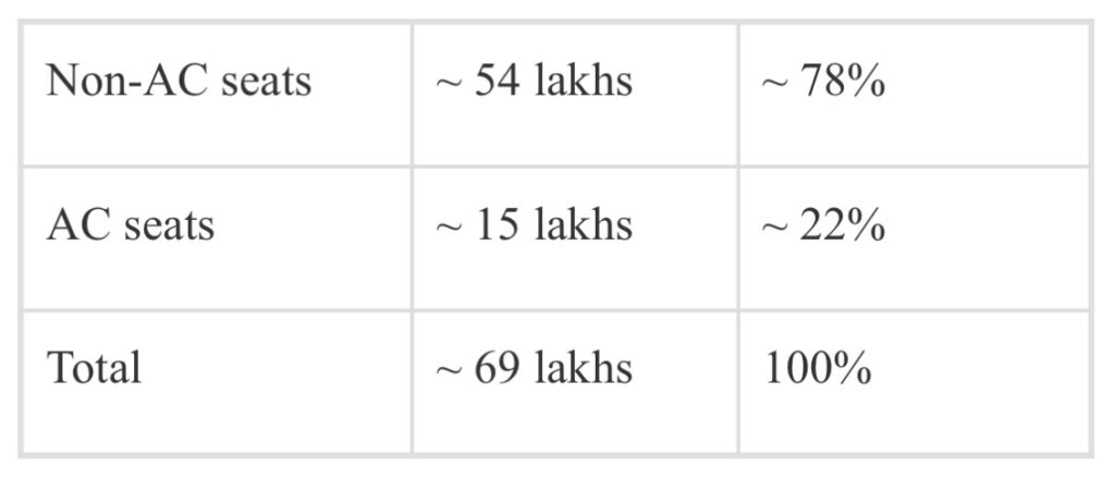The number of seats available for non-AC passengers has also increased over the years. The current composition is as follows:
