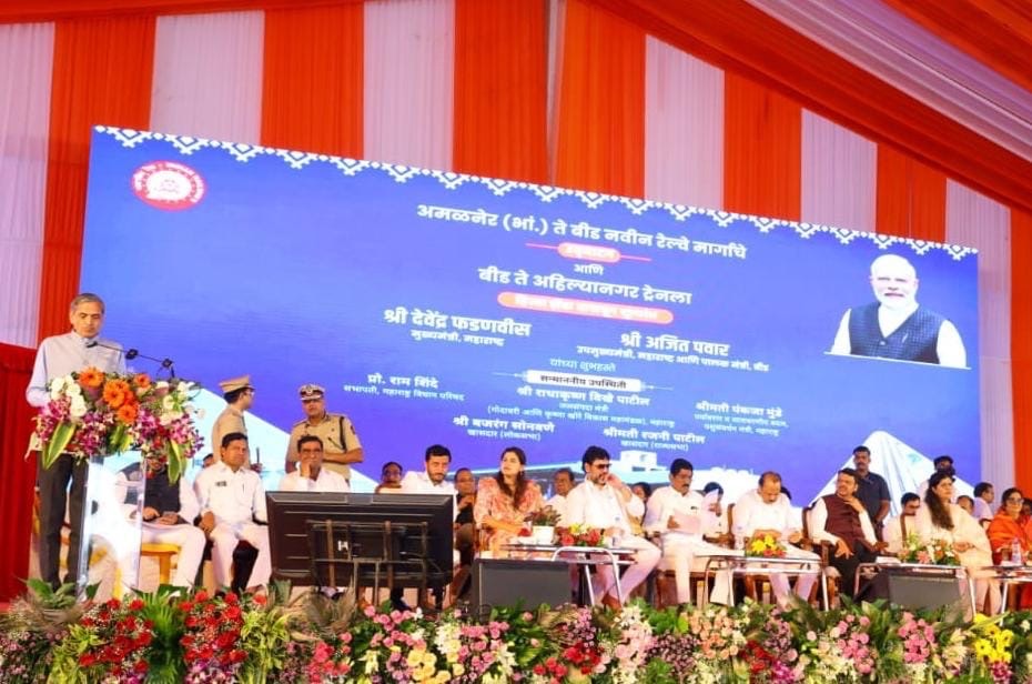 Mumbai: Maharashtra Chief Minister Devendra Fadnavis and Deputy Chief Minister and Guardian Minister Beed Ajit Pawar, inaugurated the Amalner(B) – Beed new railway line and flagged off the inaugural special train from Beed to Ahilyanagar, in the august presence of Smt. Pankaja Munde, Minister of Environment & Climate Change, Animal Husbandry Department, Maharashtra, Smt. Rajani Patil, Member of Parliament (Rajya Sabha), Bajrang Sonwane, Member of Parliament (Lok Sabha) and various dignitaries at a function at Beed Railway Station on 17.09.2025.