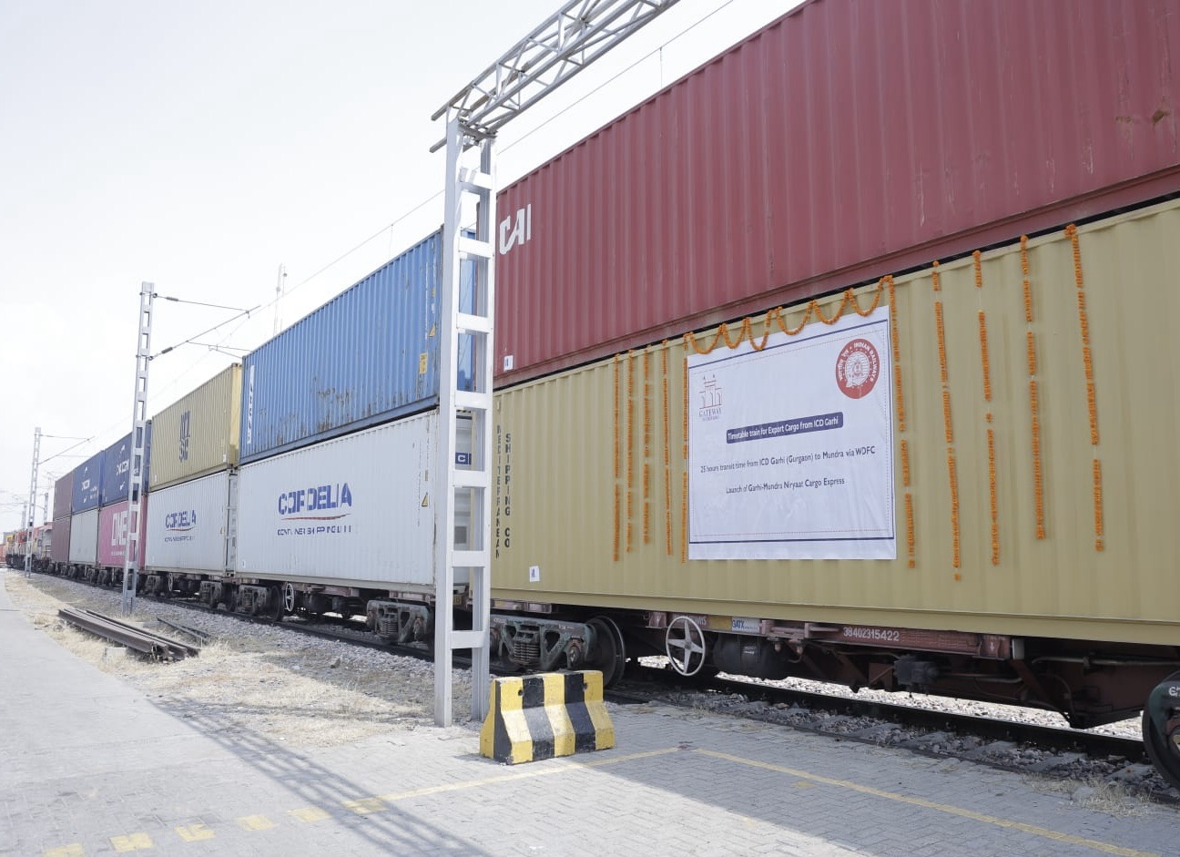 - Niryaat Cargo Service from Garhi to Mundra Port for containers, covering 1061 km in 32 hours; and