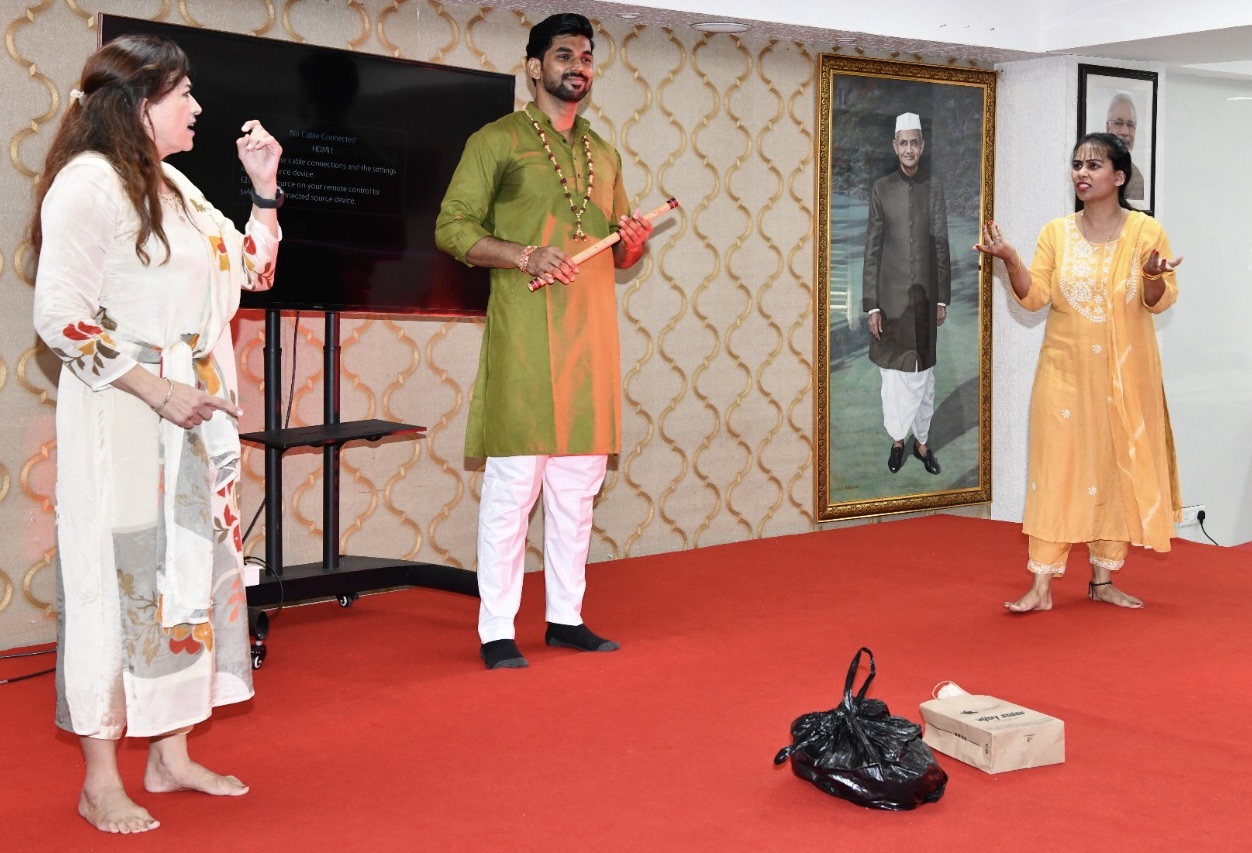 The programme began with a Saraswati Vandana presented by Apoorva Pratibha and Pankaj Vishal. This was followed by a group song based on the ‘Swachchhata Mission’ performed by the cultural team. A street play was also enacted to vividly portray the need for clean habits and their benefits.