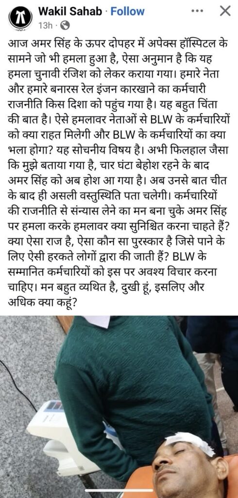 ये साहब जो वापस आ गए हैं NER में—उन्हीं कुछ अधिकारियों में से एक हैं। अमर सिंह का आधार एससी/एसटी कर्मचारियों से बाहर भी है, क्योंकि वह लेखनी और वाणी के धनी बताए जाते हैं। उन पर ये हमला इस वापस आए अधिकारी के निकटस्थ स्टाफ काउंसिल के एक दबंग से जोड़ा जा रहा है। अमर सिंह यदि जीतते हैं, तो पुराने बाहुबल पर चल रही BLW की राजनीति में आधारभूत परिवर्तन आ सकता है और ऐसे अधिकारियों की पकड़ बहुत ढ़ीली पड़ सकती है, जो लंबे समय से BLW में रहते हुए भ्रष्टाचार और गुंडई का केंद्र हैं। यह हमला पुराने वर्चस्व को बनाए रखने के प्रयास रूप में देखा जा रहा है।