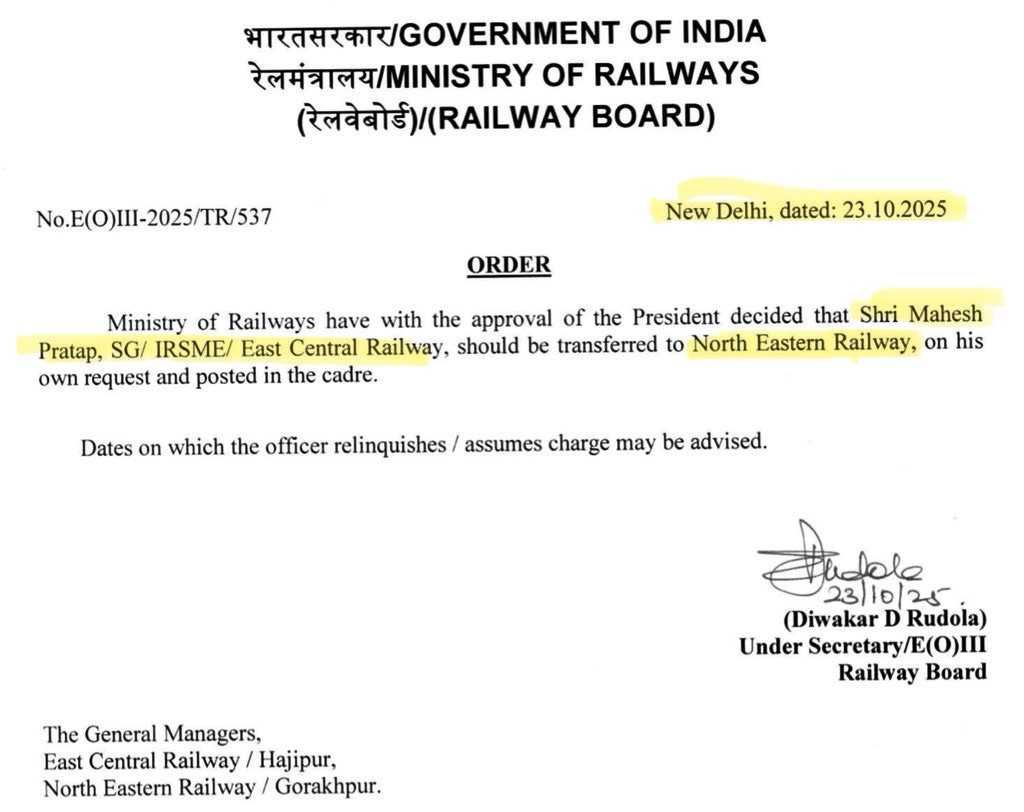 पूर्व जीएम नरेश पाल सिंह को यह श्रेय जाता है जिन्होंने अपने अल्प-कार्यकाल में BLW से ऐसे सभी लंबे समय से पोस्टेड अधिकारियों को बनारस से बाहर ट्रांसफर करवाया—ये लोग 25-30 सालों से बीएलडब्ल्यू, बनारस में ही पोस्टेड थे। सभी अपने-अपने नए स्थान पर चले गए, लेकिन एक अधिकारी मात्र साढ़े तीन महीने में ही #ECR से वापस #NER आ गया। NER की पोस्टिंग BLW वालों को वैसी ही है जैसी बड़ौदा हाउस—रेलवे बोर्ड वालों के लिए! तो यह अधिकारी ECR से NER आ जाता है। बाकी कुछ और कहने की आवश्यकता ही नहीं रह जाती!
