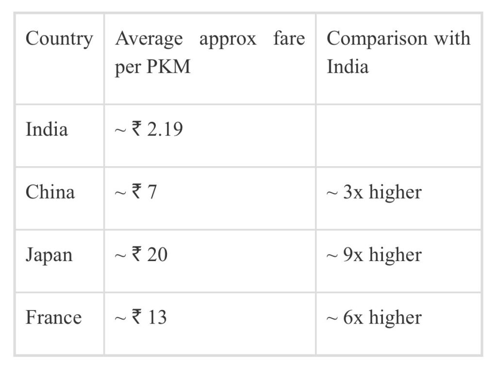 The fares of Indian Railways are among the lowest in comparison to other countries in the world.