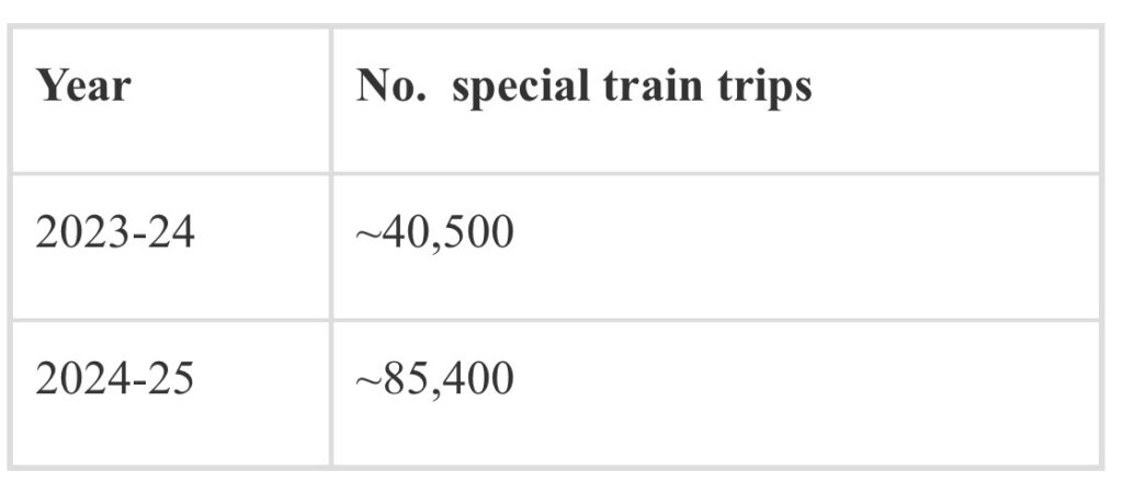 65,000 Special Trains Operated and 767 Coaches Permanently Added Till Dec 2025
