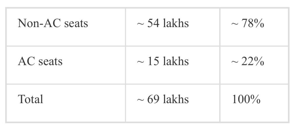 The number of seats available for non-AC passengers has also increased. The current composition is as follows: