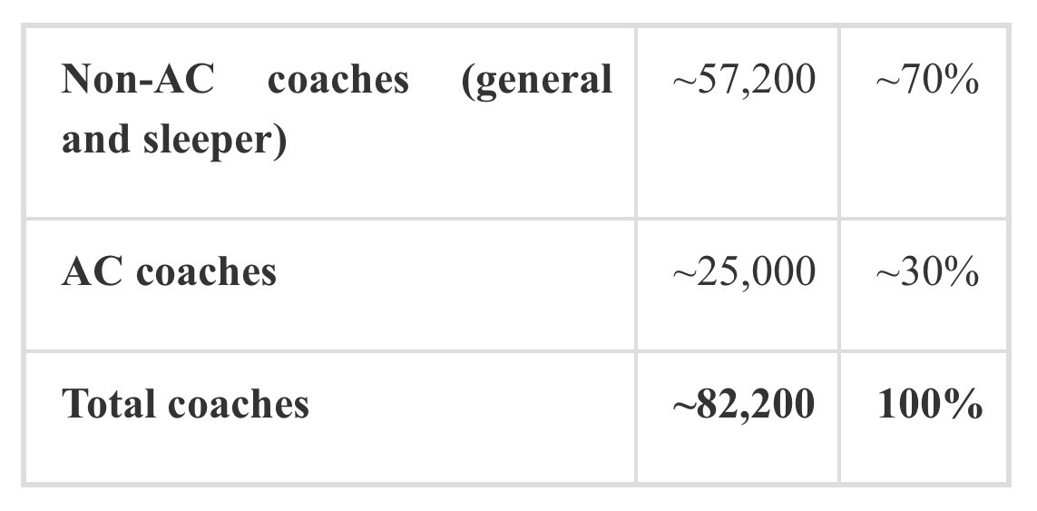 On IR, the percentage of non-AC coaches, is about 70% as indicated below: