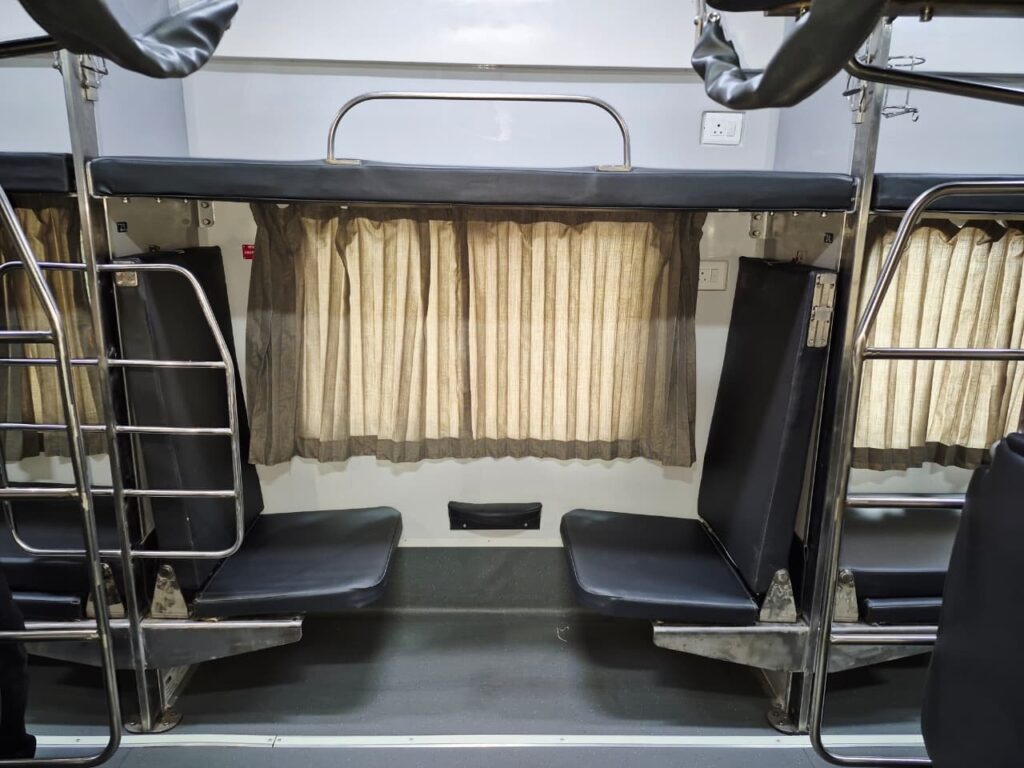 The coaches have been furnished with distinct interior colour themes, incorporating coordinated shades across key components such as PVC flooring, seat and berth rexine, snack tables, curtains, and lavatory areas. All materials used in these coaches are compliant with HL3 fire safety standards, ensuring a high level of passenger safety in addition to improved visual appeal.