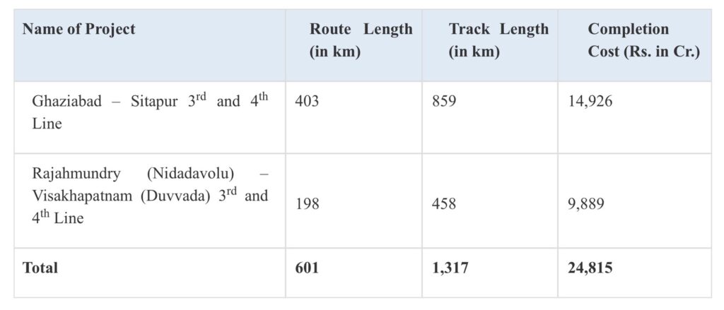 The Two projects covering 15 Districts across the states of Uttar Pradesh and Andhra Pradesh will increase the existing network of Indian Railways by about 601 Kms.
