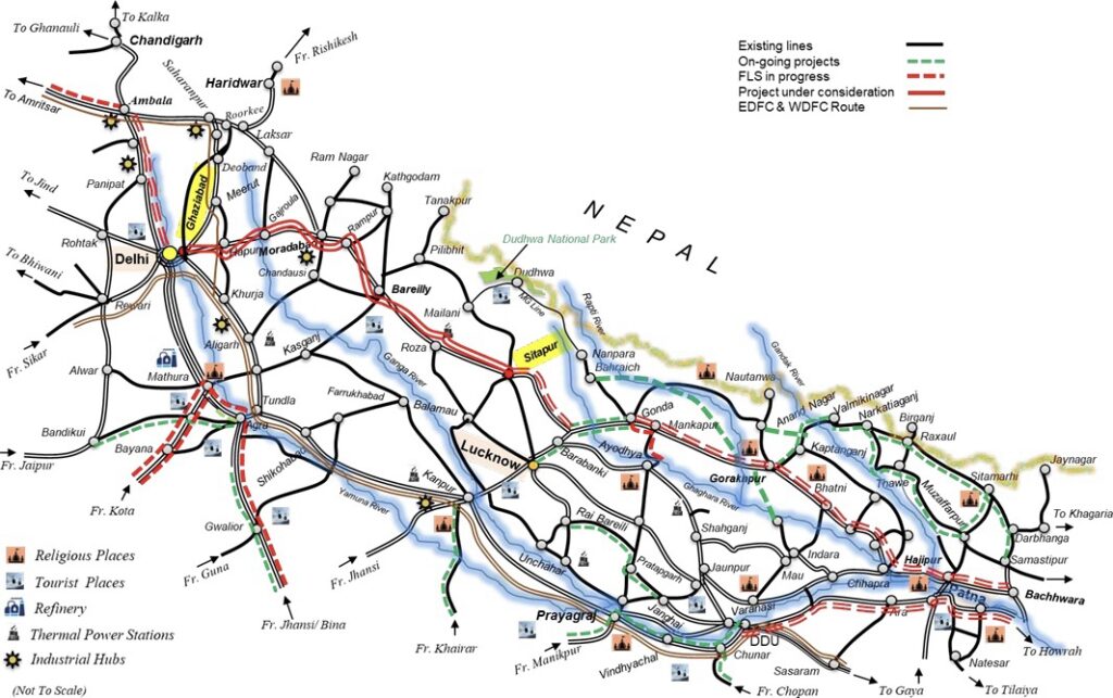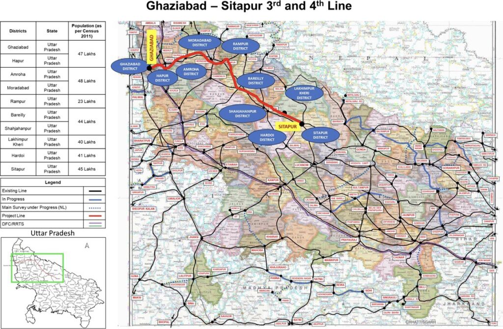 - Ghaziabad–Sitapur is an existing double line section forming a key part of Delhi- Guwahati High Density Network (HDN 4).