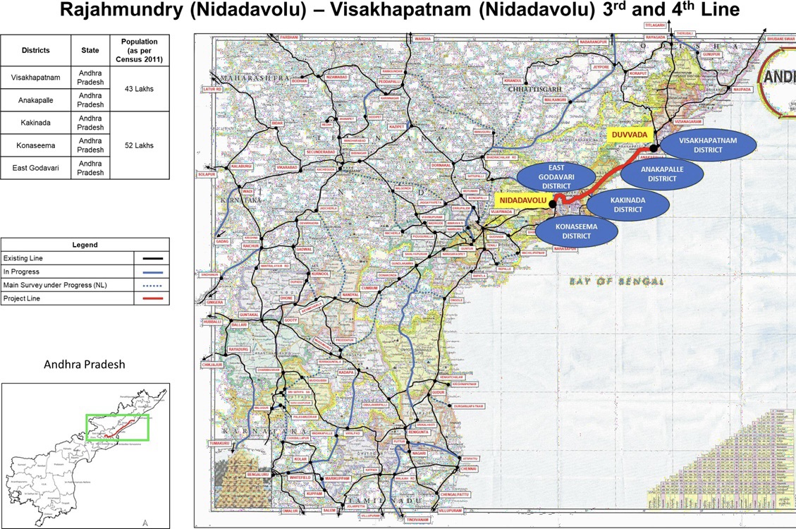 - Rajahmundry (Nidadavolu) – Visakhapatnam (Duvvada) 3rd and 4th Line (198 Km)